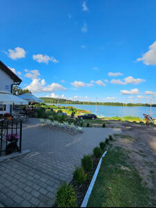 141. Pokój dwuosobowy z widokiem na jezioro i ogród Cena: 420 PLN/doba Pokój z pięknym widokiem na jezioro i otaczający ...